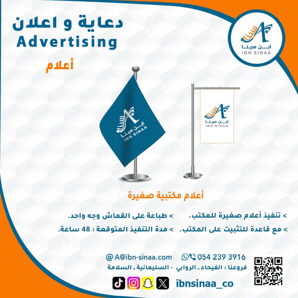 اجعل مكان عملك أكثر جاذبية وتميزًا مع أعلام مكتبية من متجر مكتبة ابن سينا الإلكتروني، حيث تلتقي الجودة العالية مع التصميم الراقي لتعزز من أناقة مكتبك.